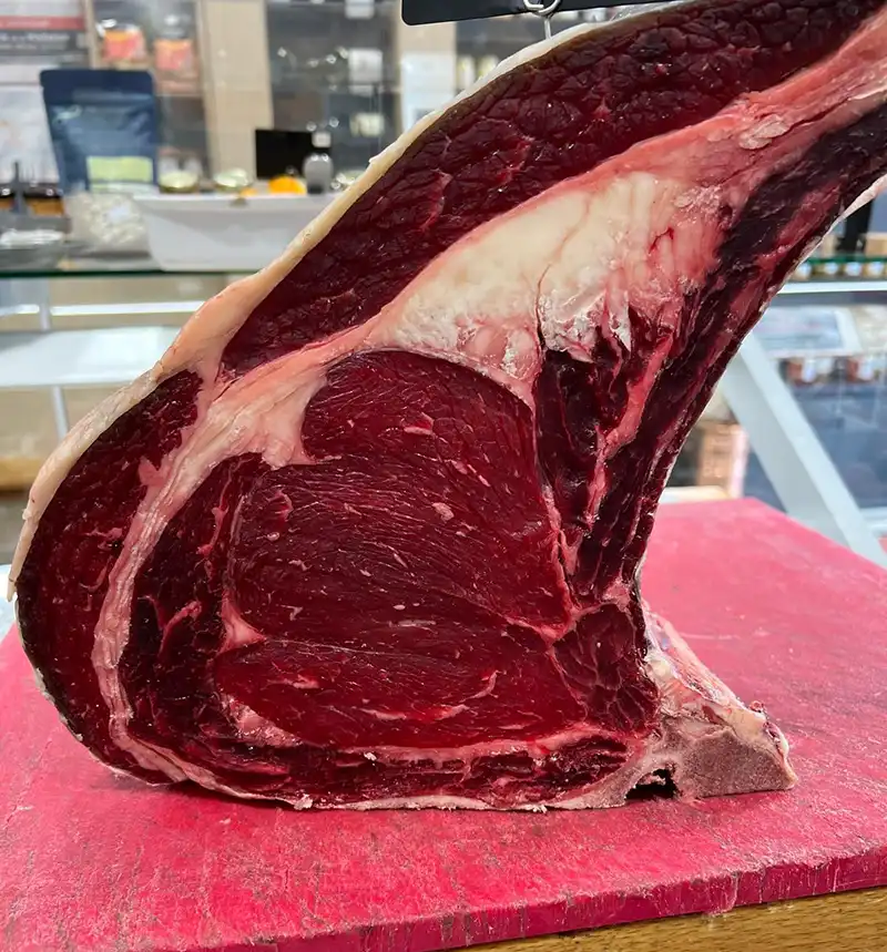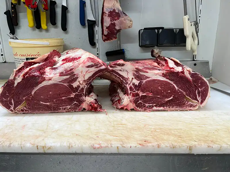 Vache lourde : issue d’animaux matures, carcasse plus lourde, persillage généreux, saveur riche.